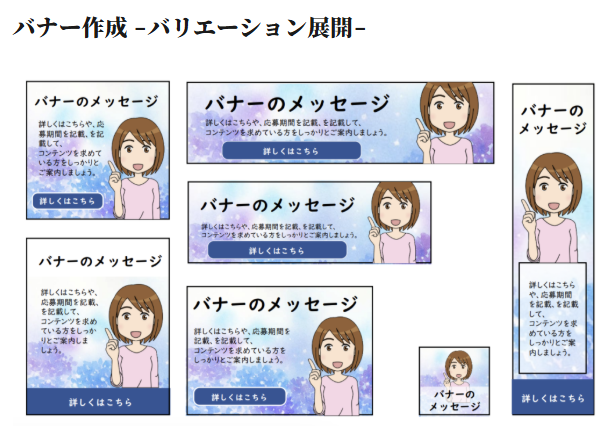 今までに作成したバナーから、別サイズを展開してもOKです。